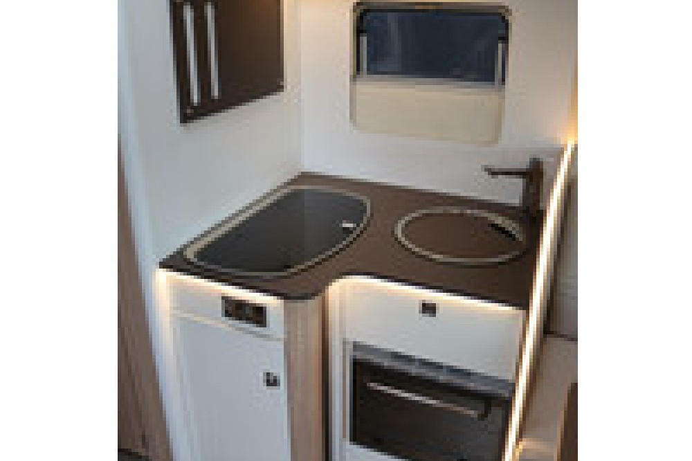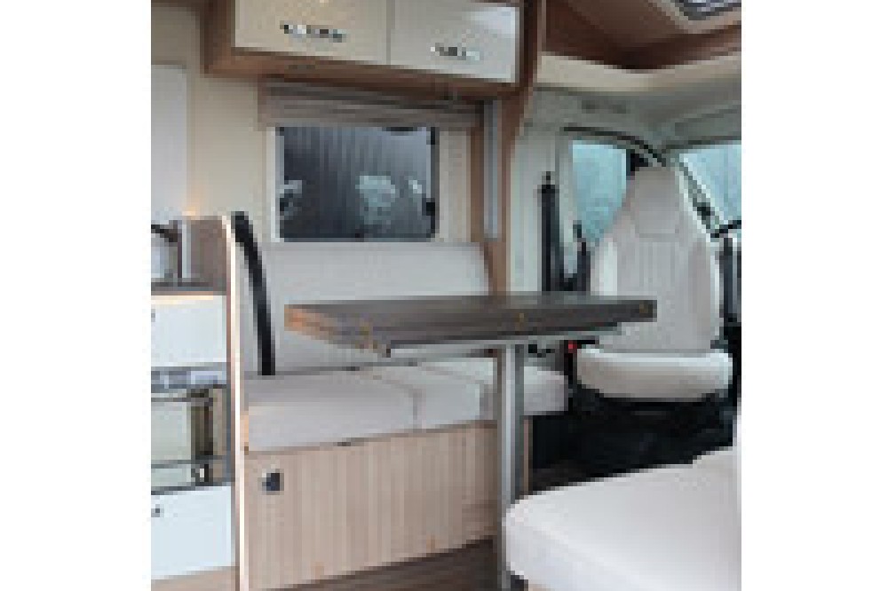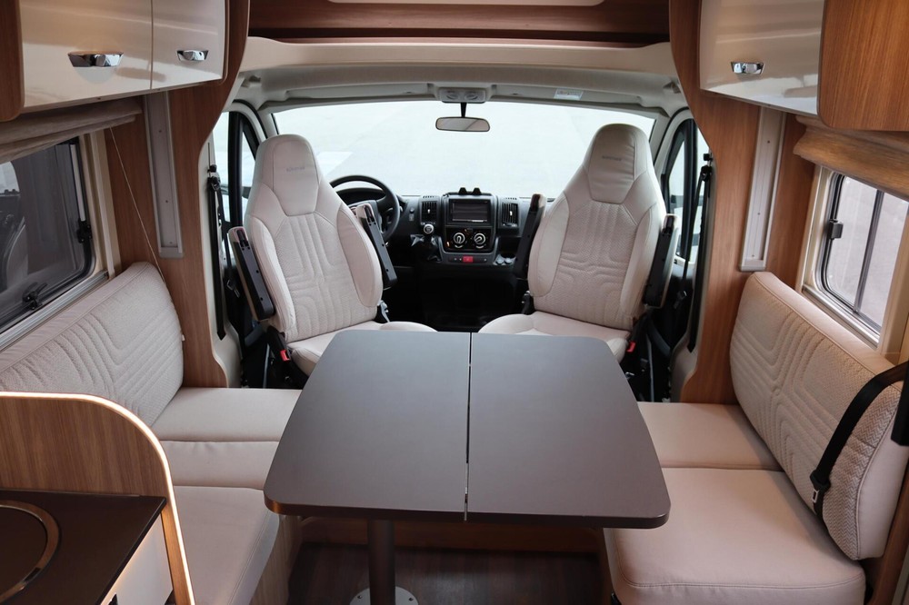 Deze ruime en comfortabele camper is voorzien van een face-to-face zitgroep, een queensbed achterin en een elektrisch hefbed voor extra slaapplaatsen.