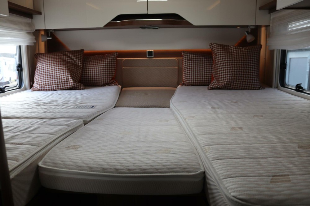 Luxe en praktische detailsDe Hymer BMC-I 600 biedt een ruime zithoek met een L-zit die ontstaat door de draaibare voorstoelen. Het elegante Noce Cognac meubeldecor in combinatie met de luxe Porto bekleding zorgt voor een verfijnde uitstraling. Dankzij de dubbele bodem, die verwarmd is en extra opbergruimte biedt, kun je jouw spullen veilig en droog opbergen. De 180 liter schoonwatertank en de 150 liter vuilwatertank zijn weggewerkt in de dubbele bodem, terwijl je vanuit de buitenkant eenvoudig toegang hebt tot de opslagruimte. De ruime garage heeft een laadhoogte van 132 cm, is aan beide zijden toegankelijk en biedt voldoende ruimte voor uw fietsen, scooter en bagage.