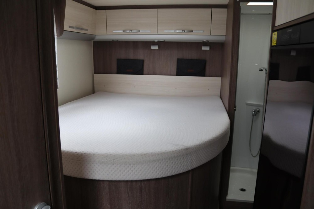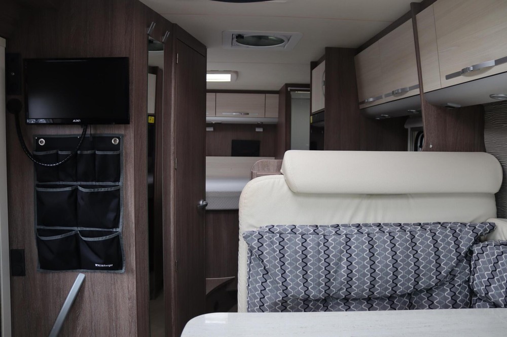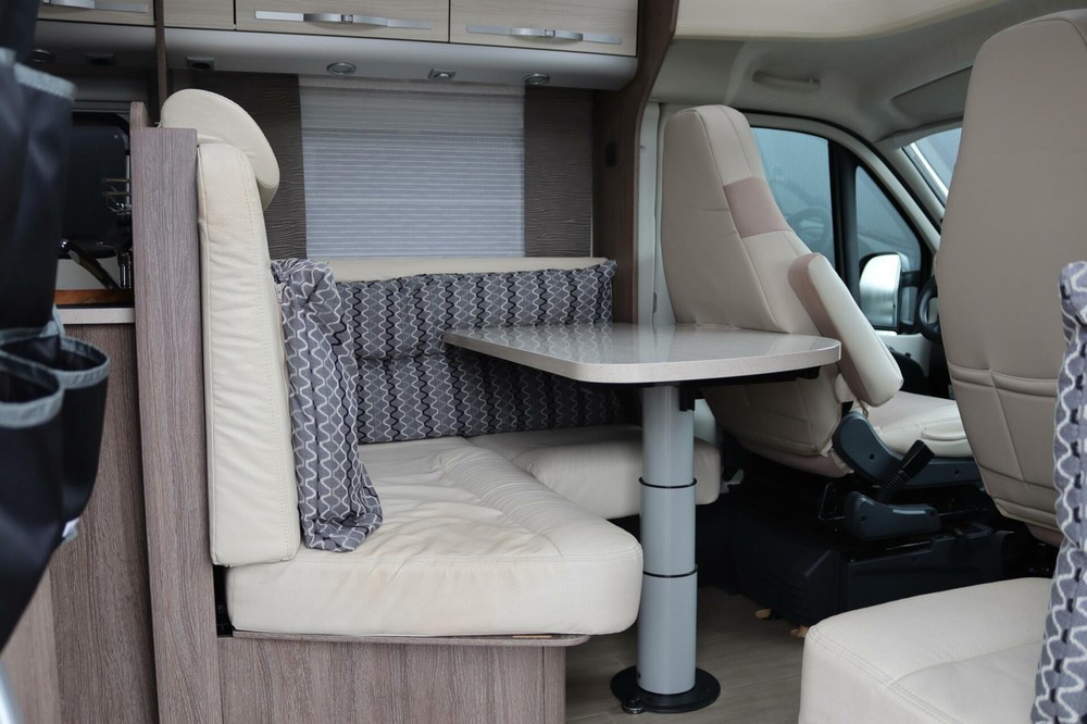 De T685 staat bekend om zijn ruime woonruimte en het populaire queensbed achterin, dat van beide kanten goed bereikbaar is. Voorin is de zithoek comfortabel en voorzien van draaibare pilootstoelen, waardoor er een gezellige eethoek ontstaat. De douche en het toilet zijn van elkaar gescheiden, wat je zelden ziet in deze lengteklasse.