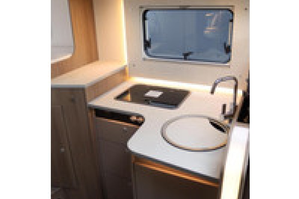 gemakkelijk te manoeuvreren en biedt tegelijkertijd genoeg ruimte voor uw comfort onderweg. De halfintegrale camper heeft veel opbergmogelijkheden in het hele voertuig.