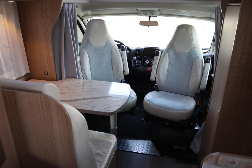 Carado T132 - Compacte half integraal onder de 6 meter.Deze complete, compacte half integraal is de perfecte indeling voor zowel korte trips als lange reizen. Met zijn 5.99 meter is hij uniek in zijn soort. Wendbaar maar toch ruim van binnen.
