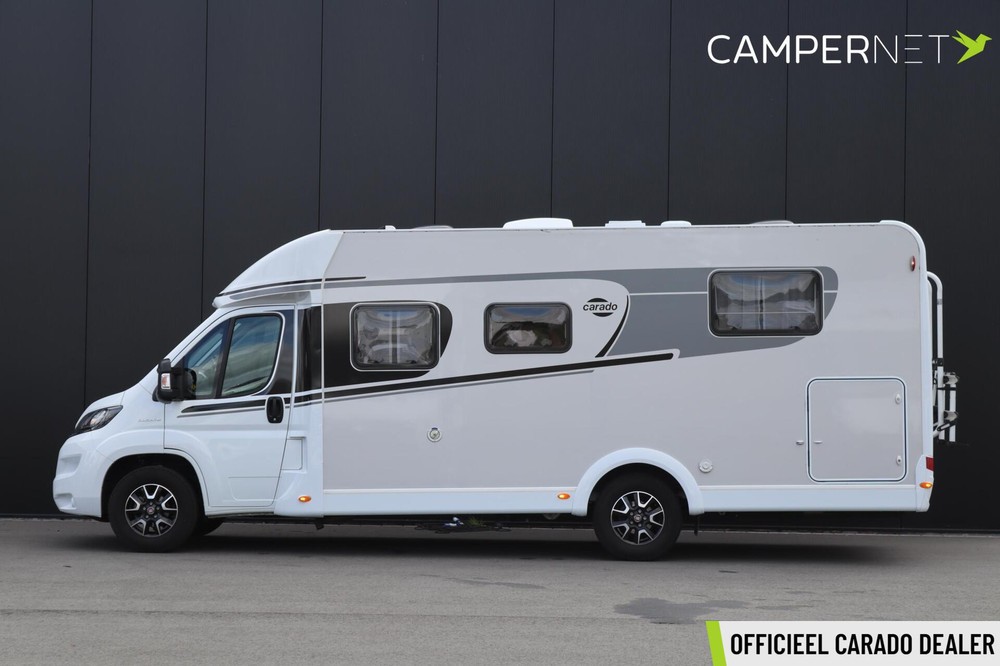 Carado T447 2.3 Multijet 140pk | Gescheiden douche | Thule fietsendrager | Lengtebedden | Bearlock | Zonnepaneel |