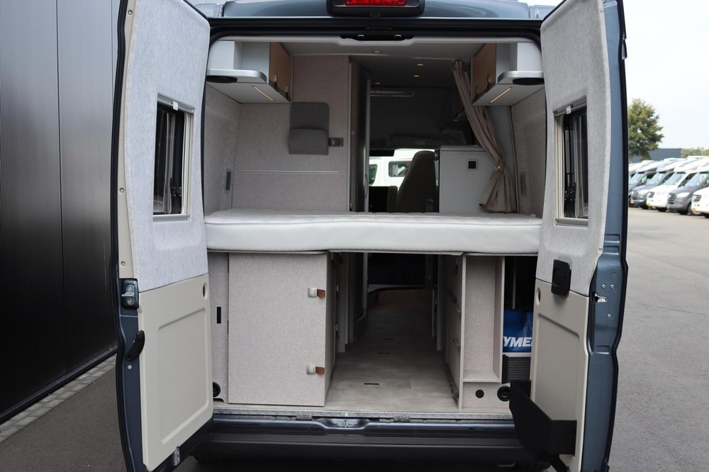 Door de watertank onder de vloer te plaatsen, werd binnen veel meer opbergruimte en flexibiliteit gecreëerd. Dat biedt nieuwe mogelijkheden voor de plaatsing van een grote kledingkast achterin en om grote voorwerpen, zoals de ladder naar het slaapdak, kampeerstoelen of boordwerktuig op te bergen. Bovendien kan dankzij de standaard sjorogen de gang in het midden nog steeds gebruikt worden om sportmateriaal of omvangrijke voorwerpen te transporteren.