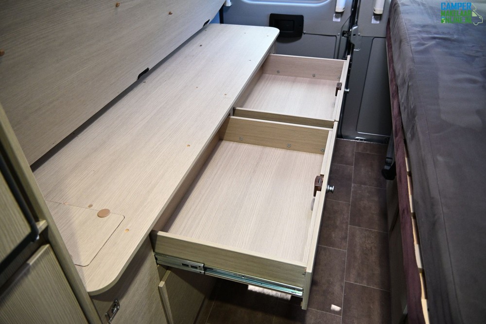 Deze buscamper is voorzien van een Fiat Ducato Multi-jet 2.3L met 130 PK (Euro 5) handgeschakeld.