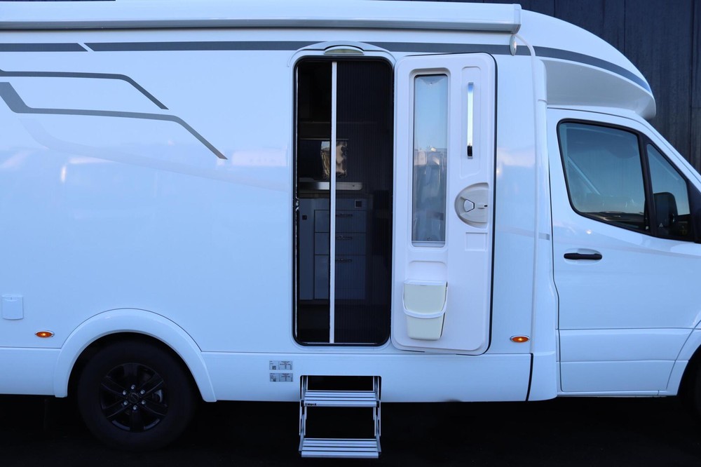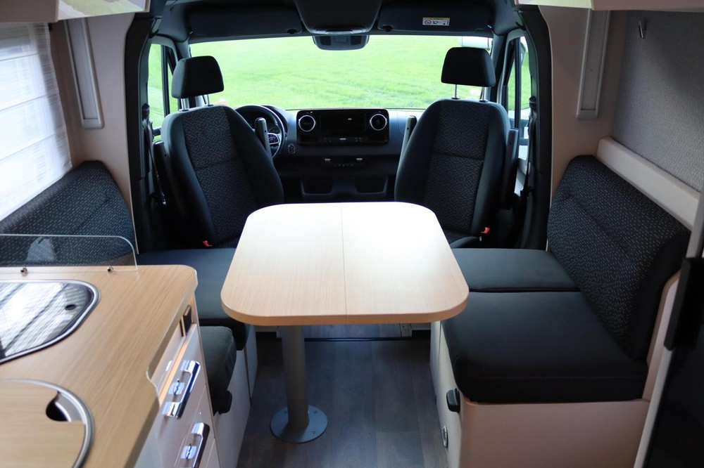 Hymer Tramp S 685. Het gezellige interieur overtuigt door de moderne, typische HYMER-designaccenten, een uitgekiend verlichtingsconcept en een royaal gevoel van ruimte. Het is gebaseerd op de beproefde en technologisch uitstekende Mercedes-Benz-voorwielaandrijving met origineel chassis en een krachtige 170pk euro 6 motor. Dankzij de eenvoudige bediening vormt deze camper dé instap in de wereld van het mobiele reizen op een hoger niveau en is daardoor ook voor iedereen de ideale eerste HYMER.