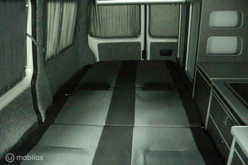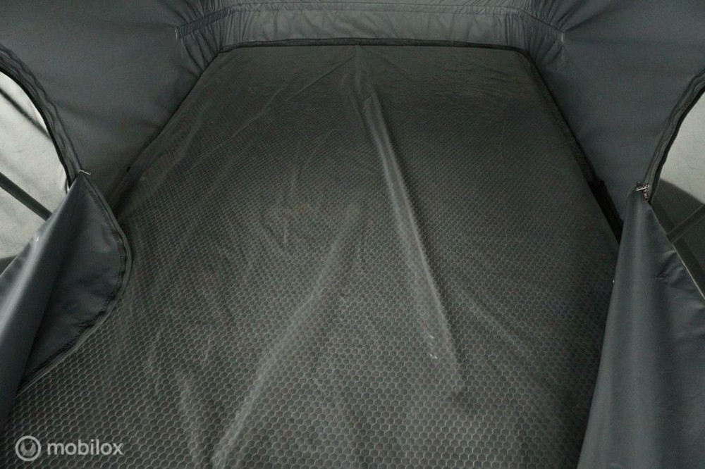 De buscamper is voorzien van een slaap-hefdak met een bedmaat van 120 x 200 cm en heeft rondom glastinting.