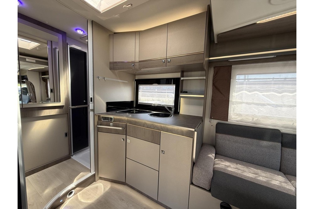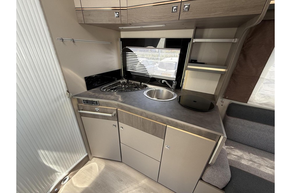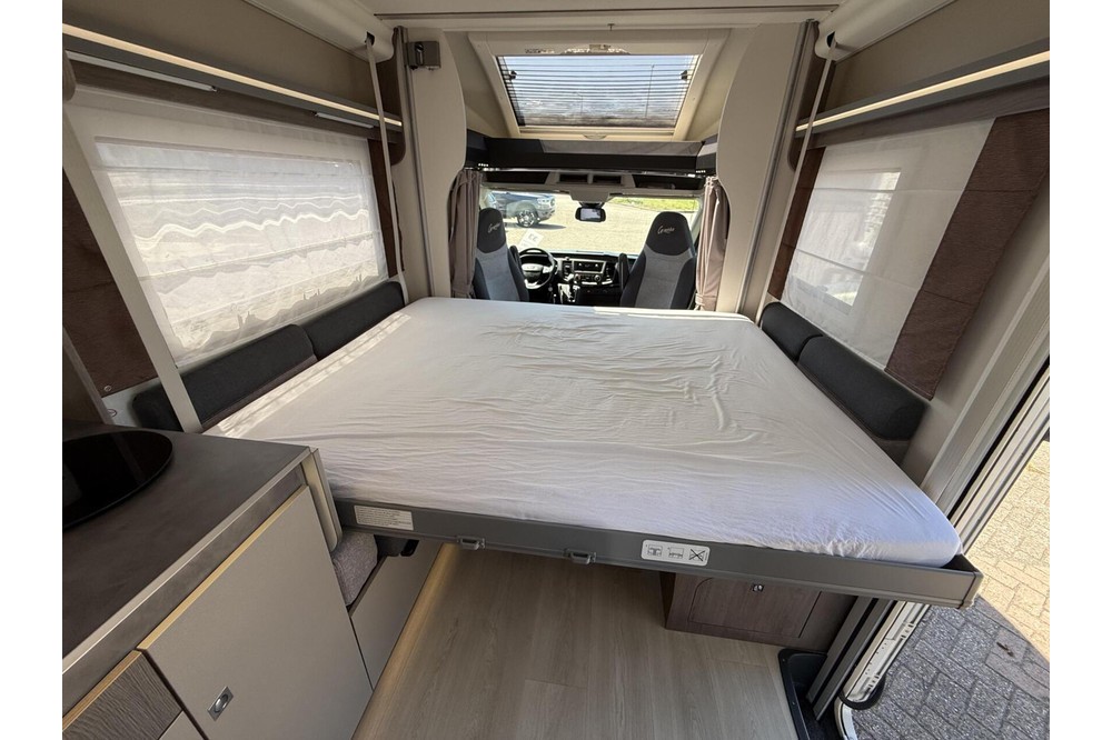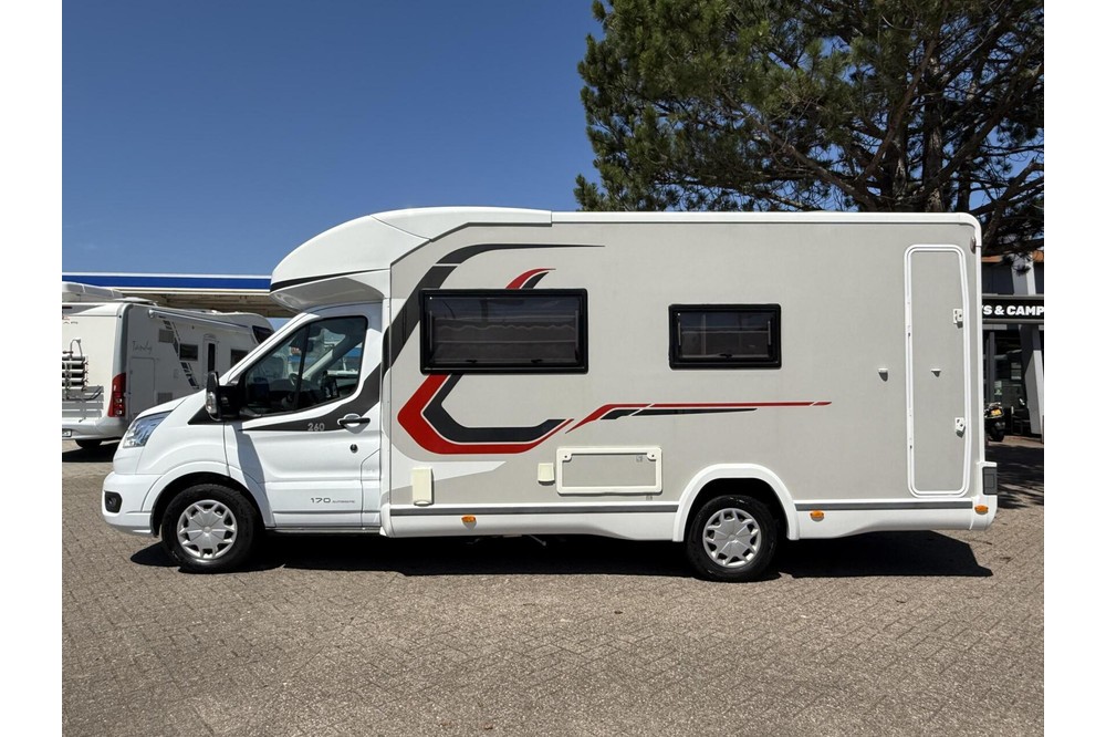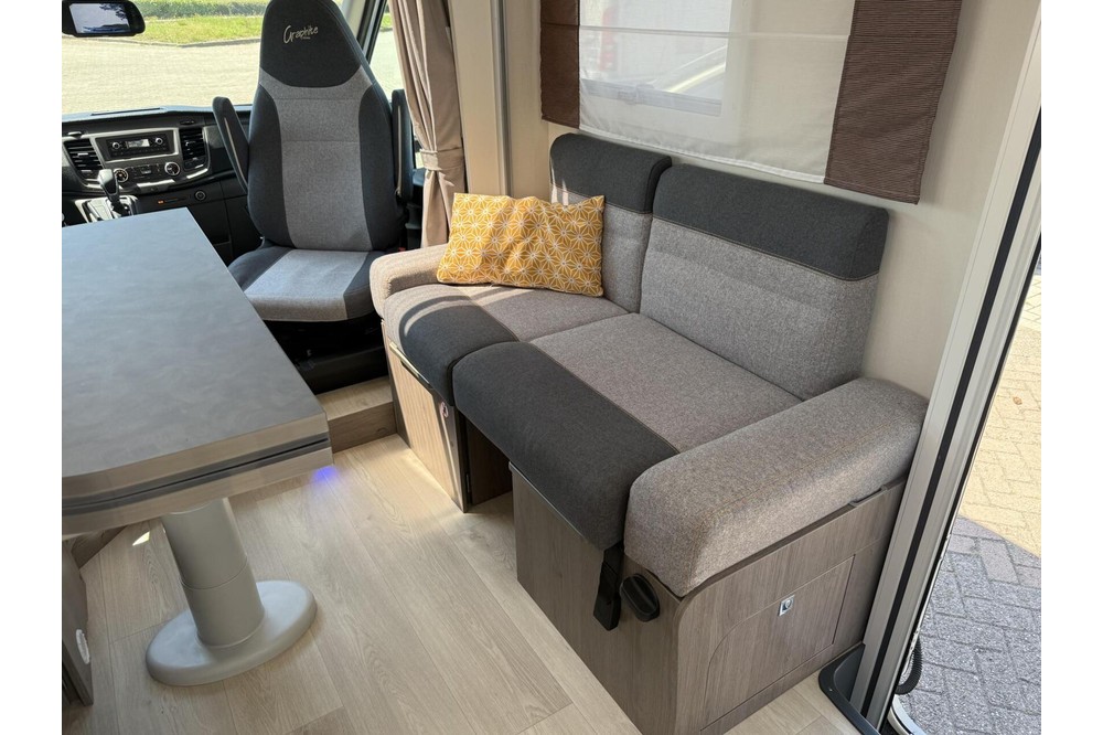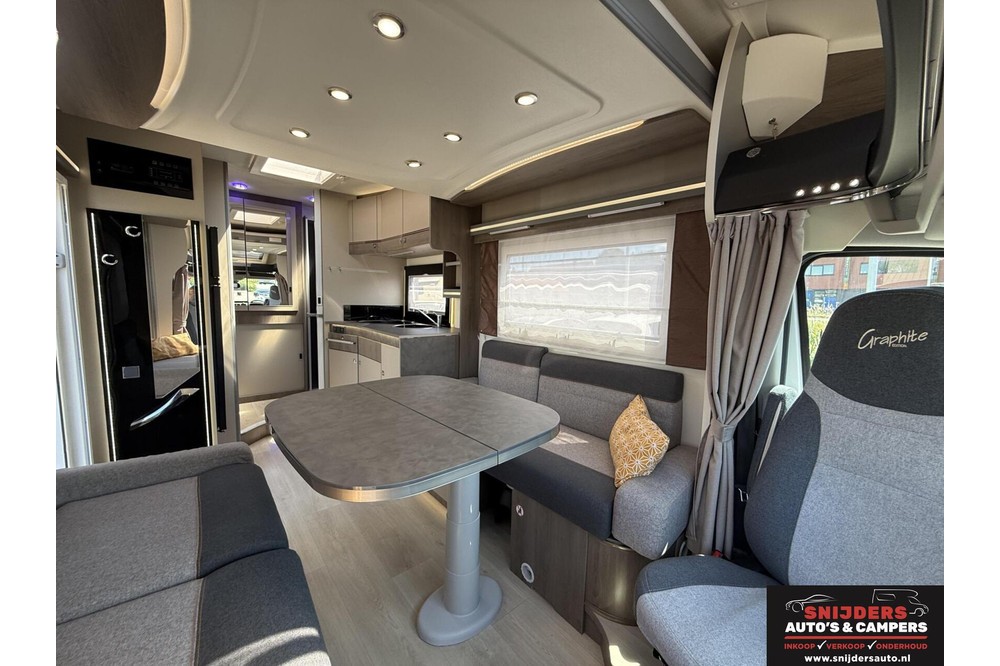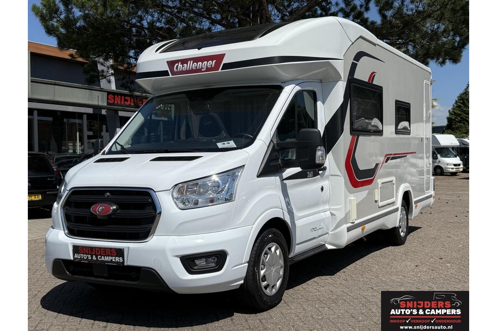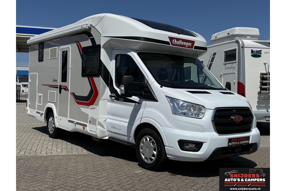 Prachtige camper in nieuw staat en heeft nog maar 20750 km gereden, Ruimtewonder deze in nieuwstaat verkerende Challenger Graphite 260 Deze complete kampeerwagen is van het merk Challenger. Heel veel daglicht en een heerlijk gevoel van ruimte beleeft u bovendien in deze camper, dankzij het fraai geintegreerde panoramadak. Een stevige hagelbui kan het polyester dak van deze Challenger camper niet deren, het is er prima tegen bestand. Uw bagage kunt u ook van de buitenzijde snel bereiken via het serviceluik. Het onderstel is van het merk Ford. De dieselmotor wordt bediend met een automatische versnelling. Onderweg naar uw volgende bestemming profiteert u van het gemak van onder andere cruise control, een navigatiesysteem, een achteruitrijcamera, elektrisch bedienbare spiegels, stuurbekrachtiging en elektrisch bedienbare ramen. De keuken is in het midden van de camper geplaatst en beschikt over een 3-pits kooktoestel en gootsteen met kraan. Een ingebouwde boiler voorziet u van warm water. De koelkast met vriesvak biedt voldoende ruimte voor heel uw voorraad.